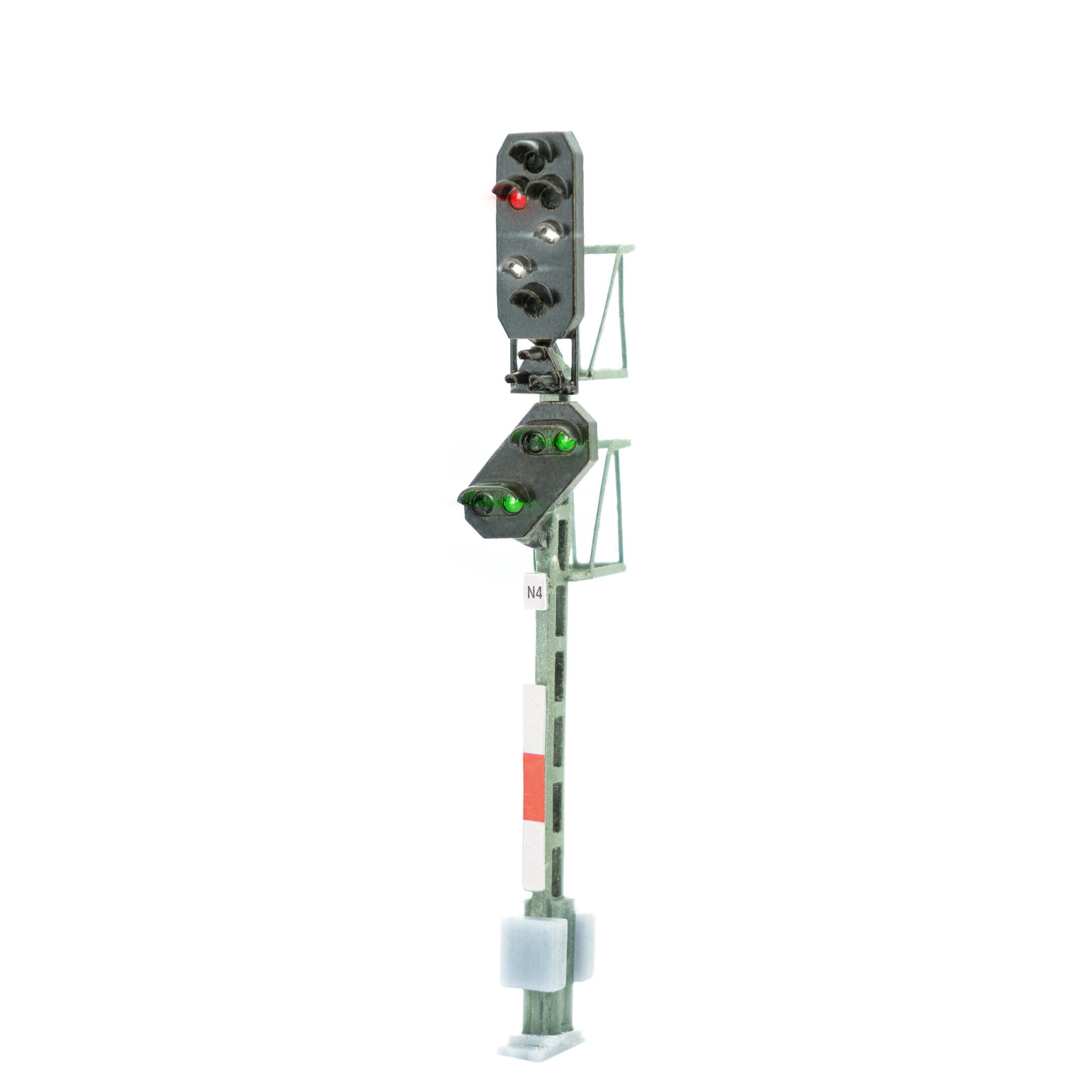 • Signalschild aus pulverbeschichtetem Messing-Feinguss und Mast sowie Korb aus geätztem Messing-Blech - mit filigranen Details wie den feinen Gittern am Korb oder dem originalgetreu ausgeführten Ersatzsignal. Dank der hochwertigen Fertigung sind Signal inkl. Lack absolut robust und kratzfest.