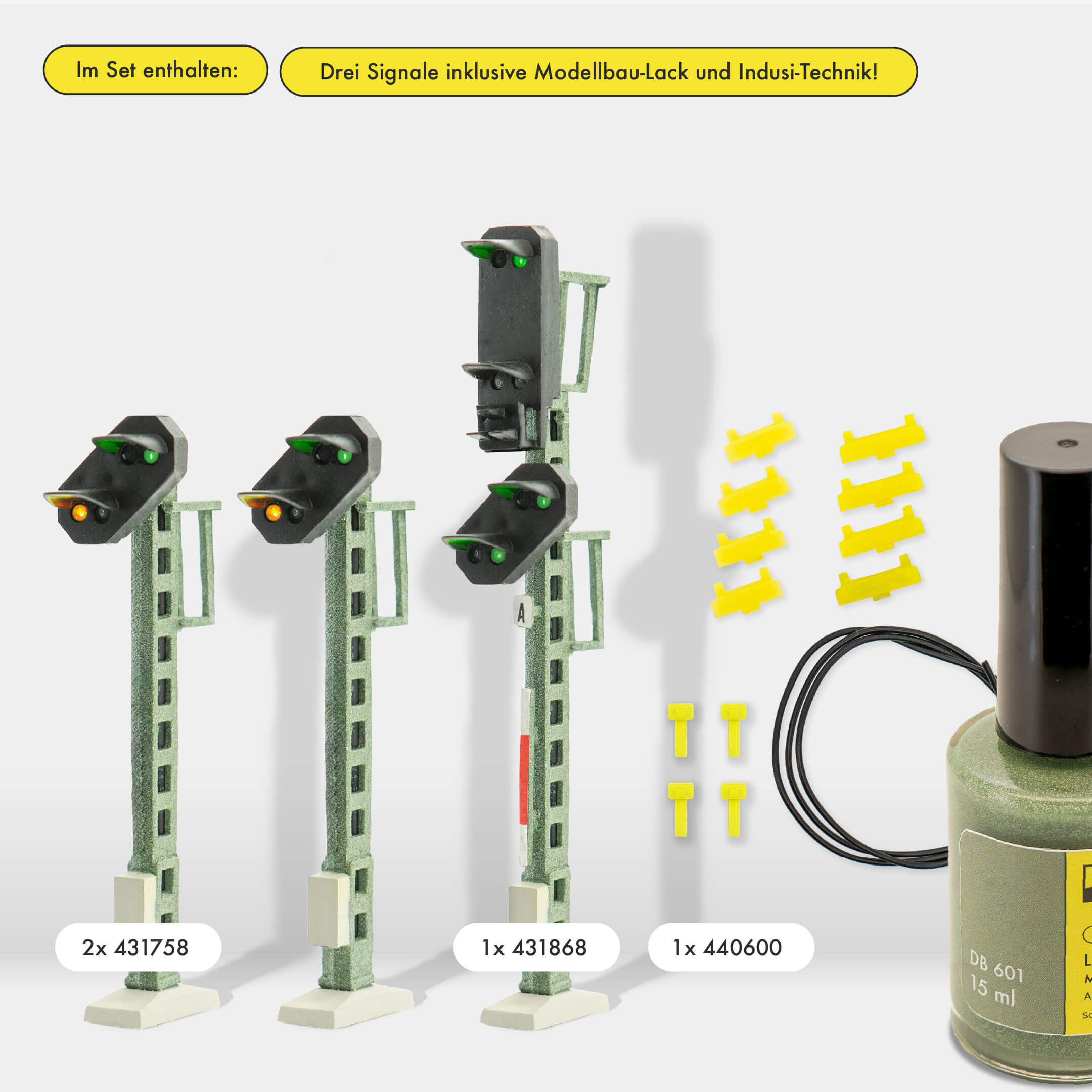 Wir empfehlen unseren Modellbau-Lack DB 601. Sie können das Signal jedoch auch unlackiert einsetzen.